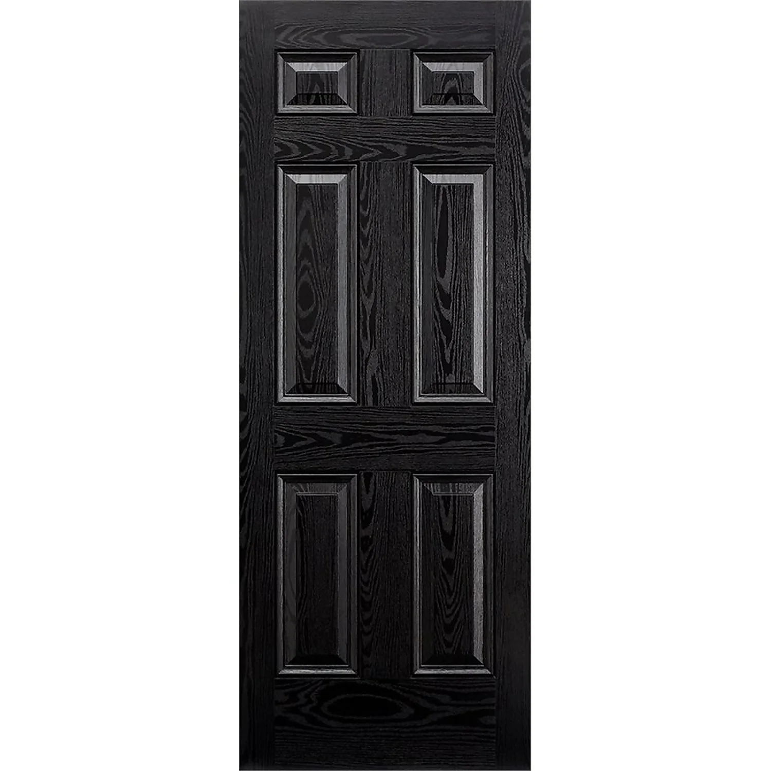 This black external GRP external door blends timeless styling with modern quality. In an ever-popular black finish, the inside face of the Colonial is white for maximum light in your home. A classic 6 panel style, this composite door will look the part in properties of many styles, creating a chic look for the exterior of your home.