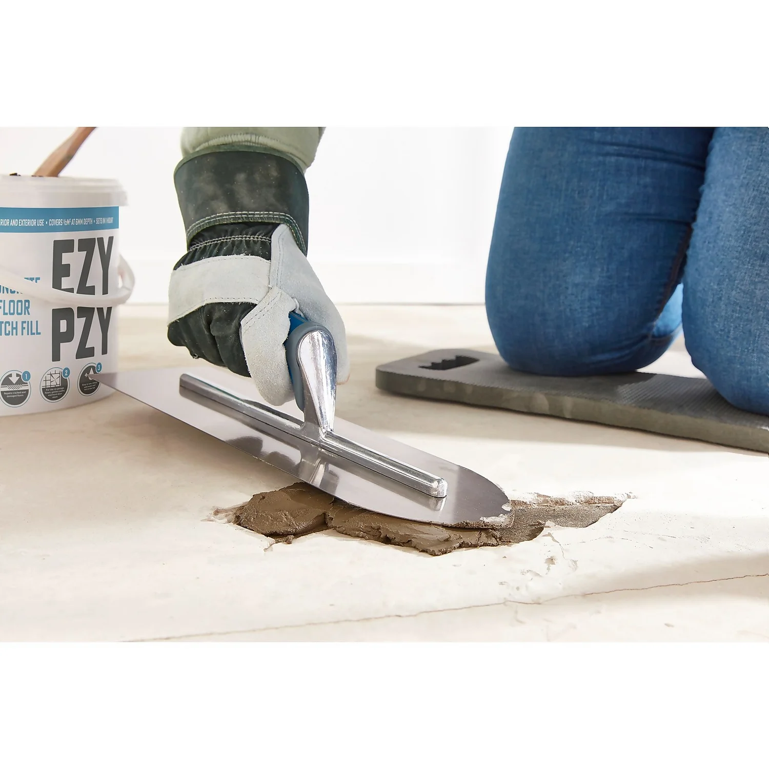 Garage floors, garden paths and doorsteps showing signs of wear and tear? Ezy Pzy Concrete Floor Patch Fill is the perfect patch repair kit for filling damaged or loose concrete surfaces.