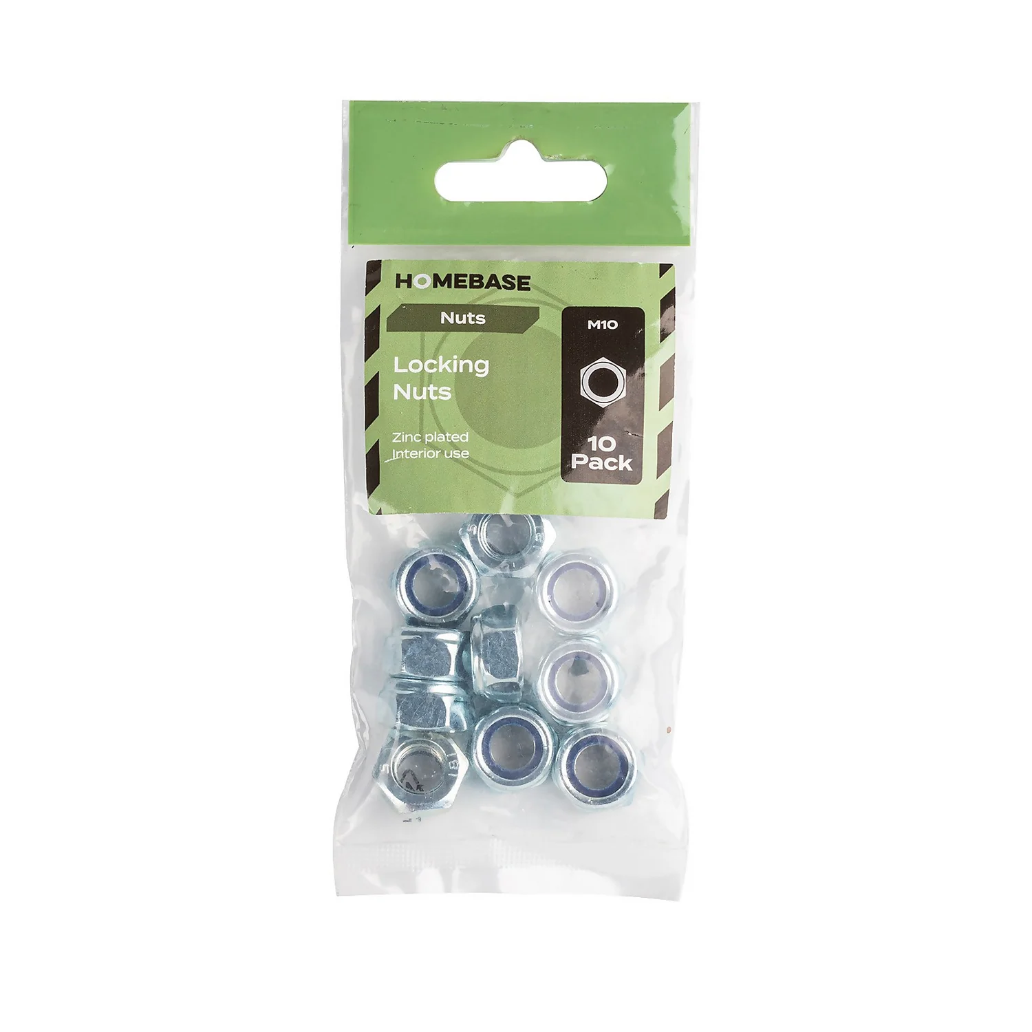 This 10 pack of Locking nuts are 10mm and have nylon inserts to prevent loosening with vibration.