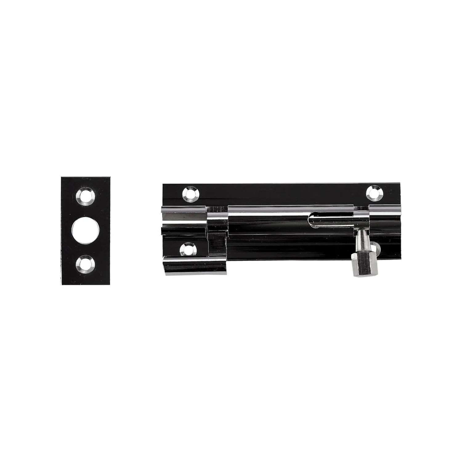 A chrome effect barrel Necked Bolt – 102mm for securing door to frame or floor.