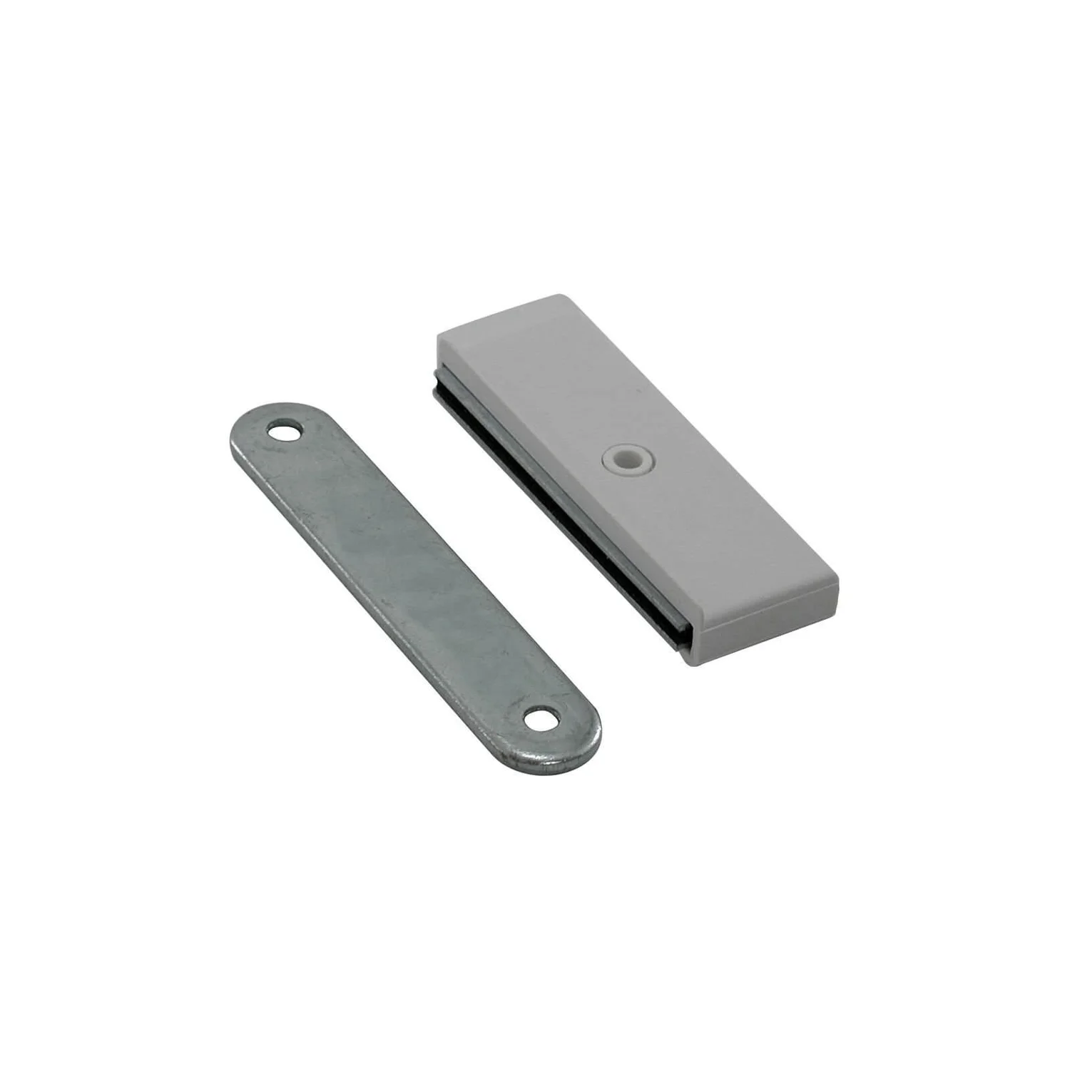 An easy surface fixing slim line white Magnetic Catch for large cupboards and wardrobes. Ideal for unobtrusive carcass fitting.