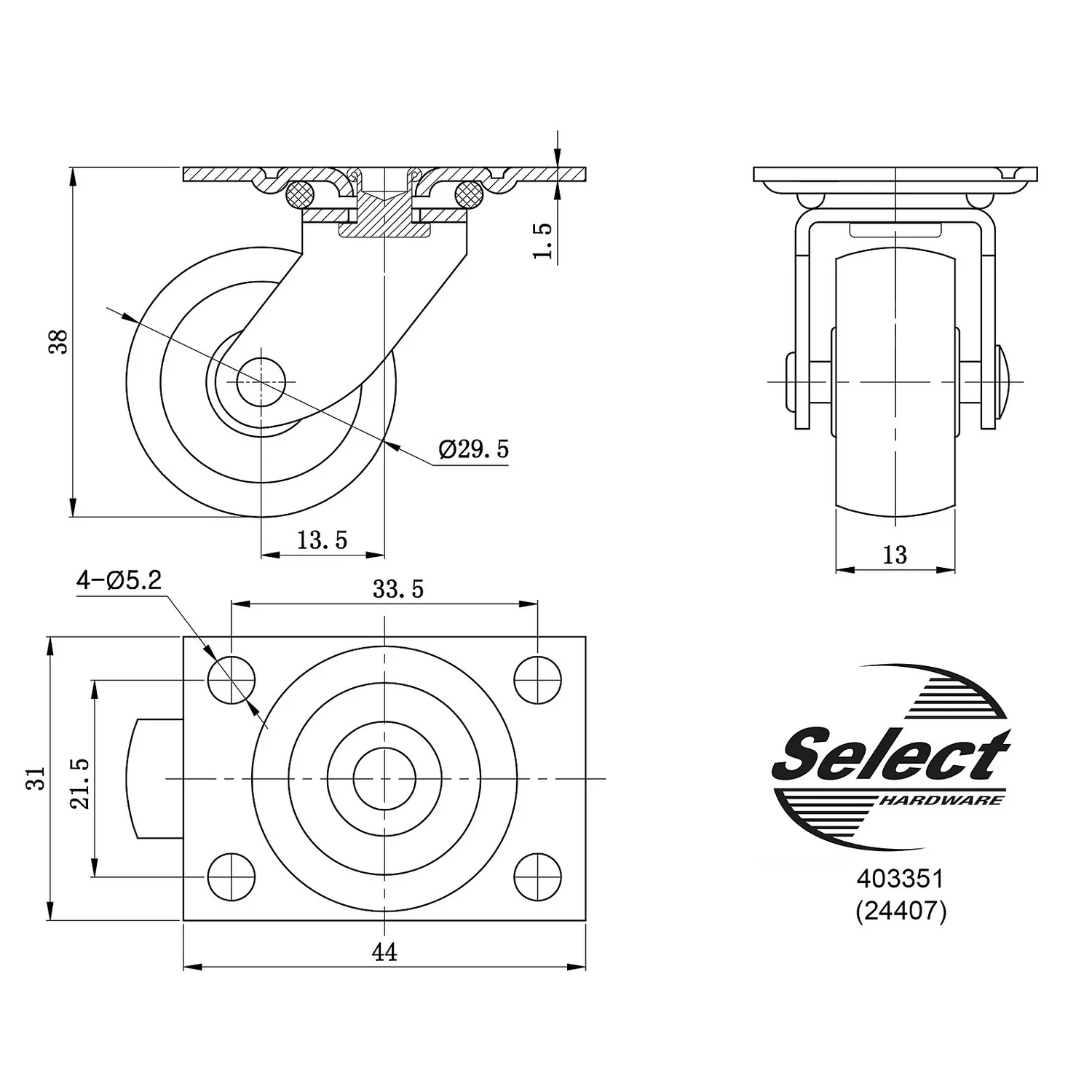 Single Wheel Plate Castor ideal for office and household furniture.