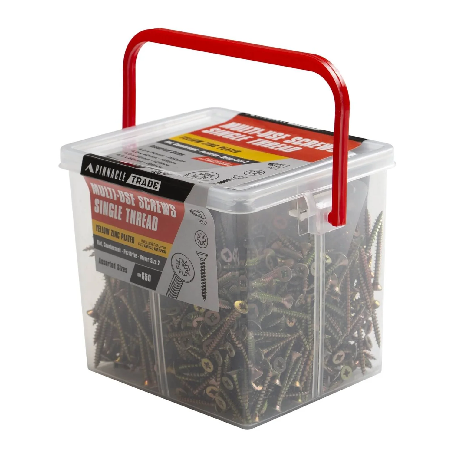 650 piece assorted screw pack that comes in a handy plastic tub with dividers.