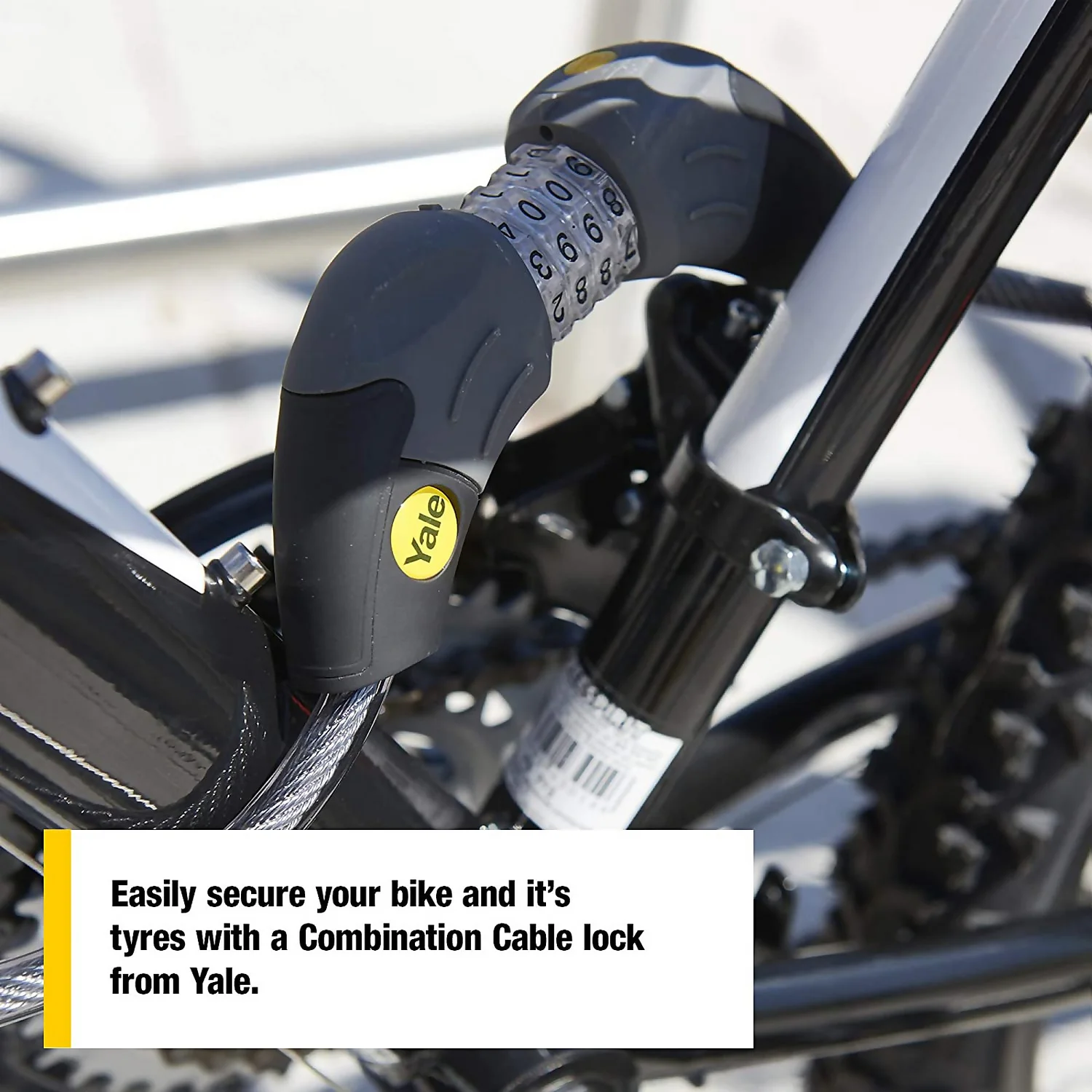 Whether you use your bike for fun, the morning commute or in sporting competition, the Yale Combination Cable Lock is a versatile and convenient standard security solution. Featuring a twin lock that secures the cable in two places, and a steel ball click gear system, that resists picking and pulling. A protective vinyl coating protects painted surfaces from scratches and the integrated phosphorescent digits help input your code even when its dark. Yale combine 180 years as one of the best-known and most respected names in the industry with cutting edge locking technology. For peace of mind, protect your bike with Yale.